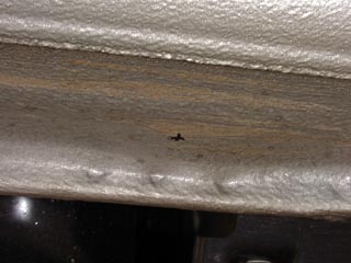 リアバンパーの内側にはアンダースポイラー用のネジ穴位置に印が付いているのでドリルで穴を開けます。全部で11箇所。 |