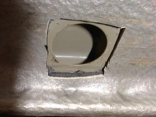 印を中心に四角くカッターで切り取りますと丸い穴が出てきます。 |