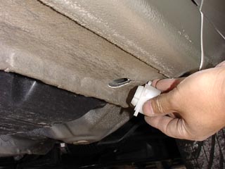 サイドステップに付属の樹脂パーツを穴に挿し込みます。 |