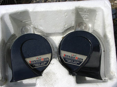 純正ホーン 「びっ」って感じのいわゆる安っぽい音のホーンです。 定番ではプログレ用のホーンが安くて簡単らしいのですが、今回は運良く社外製ホーンが1セット手に入ったのでそれを付けることになりました。 参考: トヨタ純正/プログレ用ホーン (品番:86510-51010) 定価:1940円(税別) トヨタ純正/プログレ用ホーン (品番:86520-51010) 定価:1940円(税別)