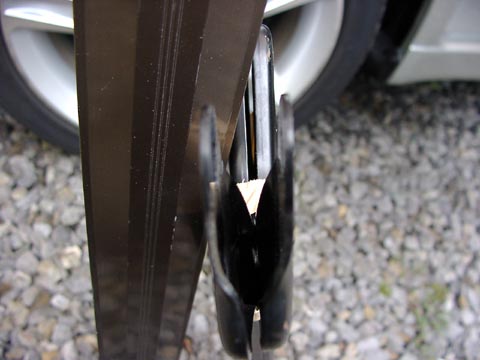左は純正を横から見たところ。 薄い鉄板をプレスして作ってあります。 下2枚は家でデジカメをもぐりこませて撮った強化メンブレの画像、うまく撮れてません(w 製品の仕上げは粗いようですが、純正に比べるとかなり剛性が高いように見えます。 |