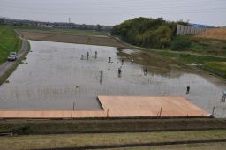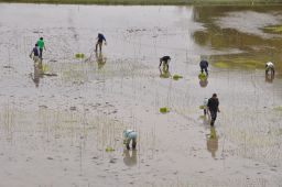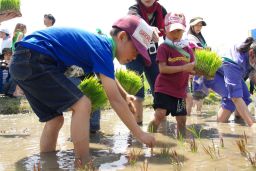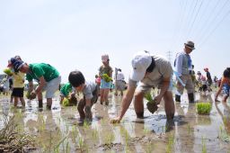 事前の測量と細かい部分の田植え→若手農家のみなさんの協力! |