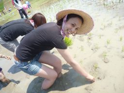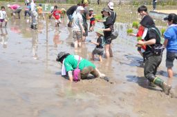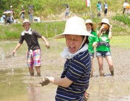始めての田んぼは足を取られて、歩くのもタイヘン! |