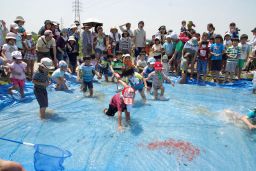 今年はうなぎ取りに変わって金魚つかみに挑戦! |