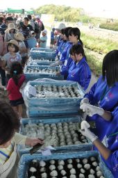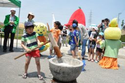 昨年の田んぼアートで取れたお米でもちつきに挑戦 |