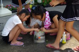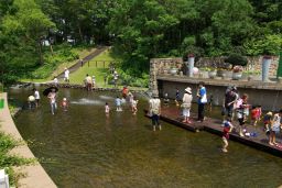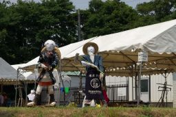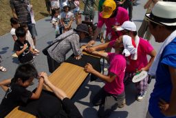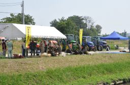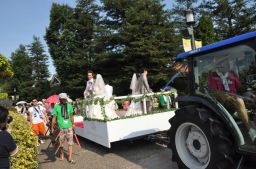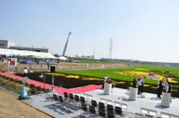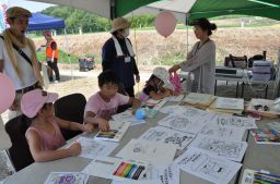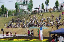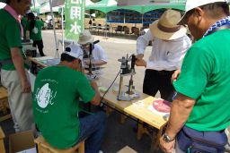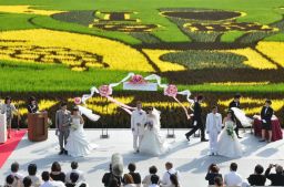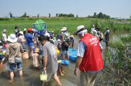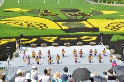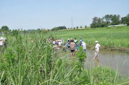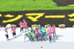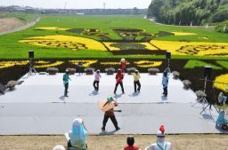 田んぼアートステージ→いよいよ3組の合同植えディング |