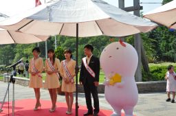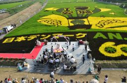絵は田んぼアートとおなじ、気球に乗ったキーボーとアイラブ安城 |