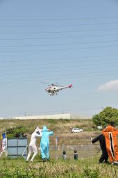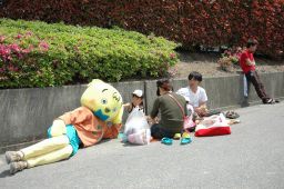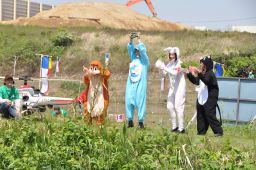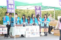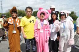 大村愛知県知事と着ぐるみの安城農林高校生徒たち |