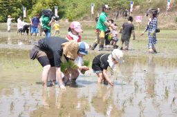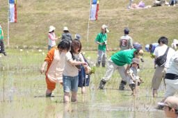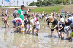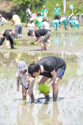 田んぼアート実行委員会も各所でパネルを置きメッセージを伝えることが出来ました