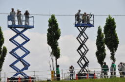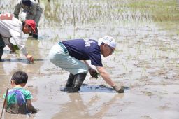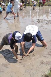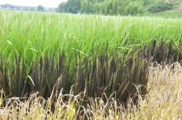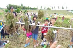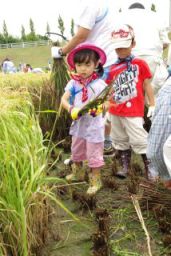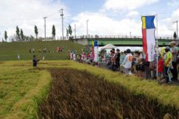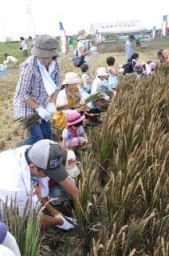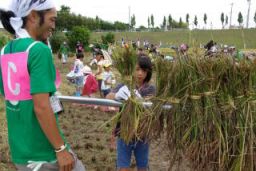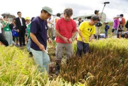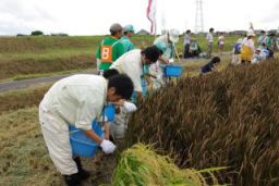 ちょっと変わった景観用黒色稲の刈り取りに奮闘! |