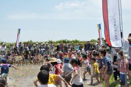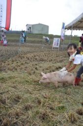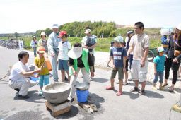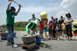 去年の田んぼアートで収穫したもち米を使って餅つき大会 |
