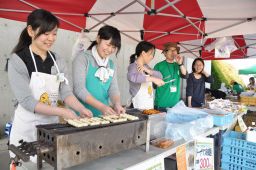 裏手では米娘クラブの人たちがおにぎり作りに奮闘中! |