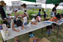 田んぼアートぬりえ たくさんの人が東北へのメッセージを描いてくれました