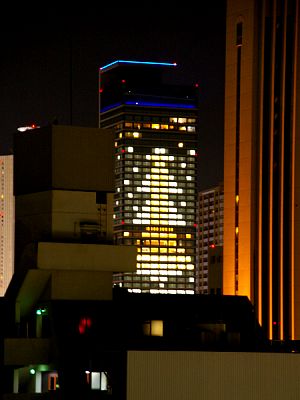 その日暗くなるのを待って、別室の西窓から名古屋駅方面を探すと、