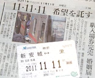 これによるとこの日某駅で、列車番号1111の電車が11時11分に発車するのを見る客で、