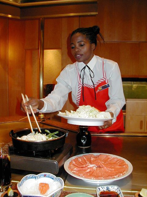"This is Sukiyaki" 「ど〜お、この箸さばき」 「なんとこの地で!」って思いがして、 一段とおいしく感じた夕食だった。 (ちょっとした配膳の手違いはあったが、味に手抜かりはなかった) |
