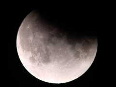 7月5日。 あの日から月が地球をちょうど半周した。 今夜は満月、しかも月食だ。 しかし愛知安城では月の出後まもなく曇ってしまい、ほとんど諦めていた。 ところが0時前ごろ、雲間からさわさわと半欠けのお月さんが見え隠れし始めた。 やおらあわてて望遠鏡にデジカメをセットしたが、 セットし終わるや、また真っ暗。 悲運を嘆きつつしばし経った0時50分頃、 やっとまた半欠けお月さんが一瞬顔を覗かせてくれた。 あの日ルサカで太陽を隠した月が、、、と思うと、 感慨深いものがあった。 |