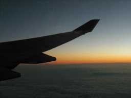 2001年6月17日、深夜のシンガポールを発って10時間余り、 マダガスカル 長い長い夜が終わりを告げ、 やっと朝が飛行機の後から追いかけてきた。 行きは地球の自転に逆らって西へ飛ぶので、 なかなか朝がこない。 時差を意識させられ始める。 あと約1時間ちょっとでヨハネスバーグだ。 |