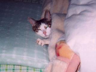 この頃の長ニャンは長男の布団にもぐり込んで寝るのが日課だった。