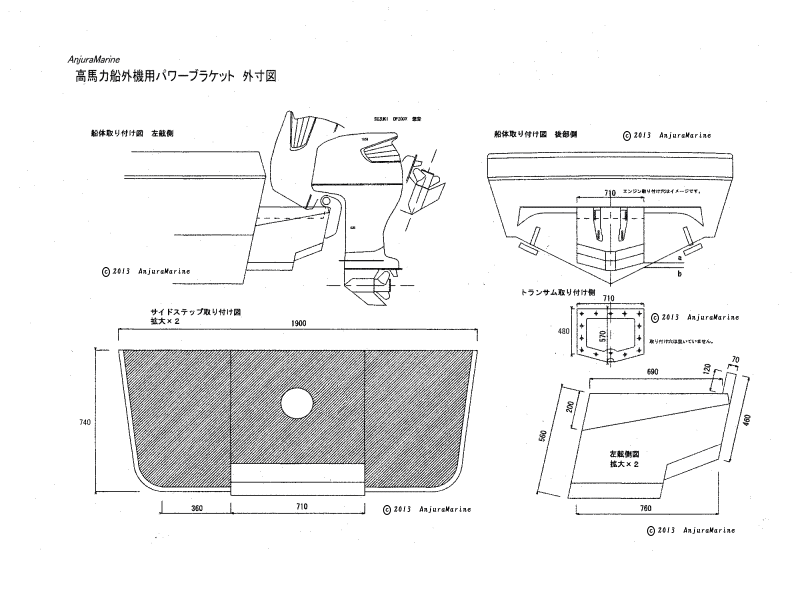 図面は、お持ちのボートの形状により違いますので、ほんの一例です。