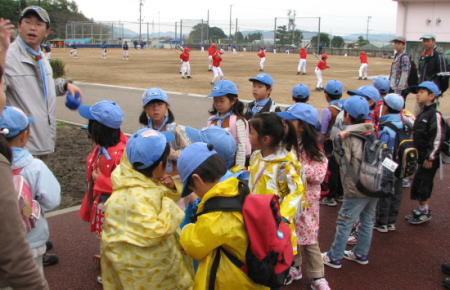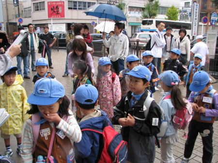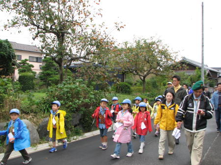 | かいじょうの さくらい しょうがっこうまで あるいて いどうしました |