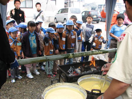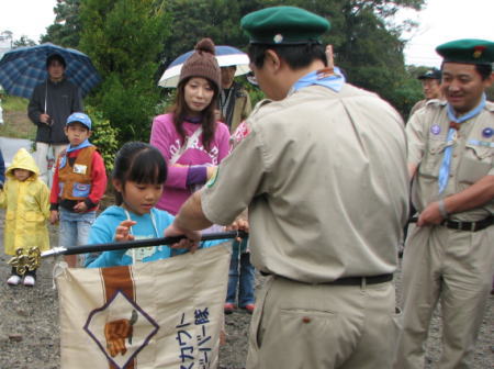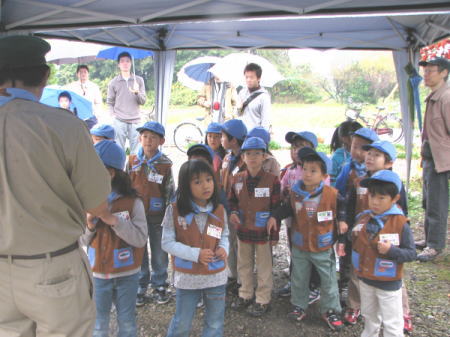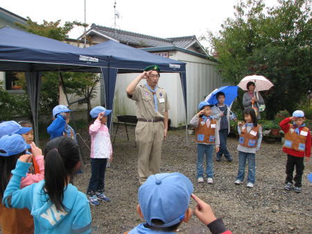 | たいちょうのまえで ビーバーの やくそくをいって ビーバーたいへ にゅうたいしました |