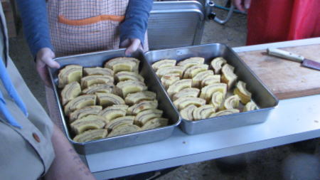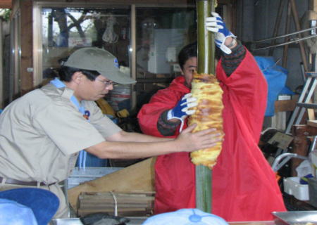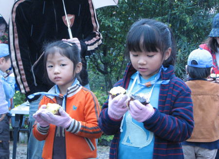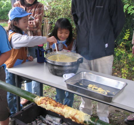 | てんとのしたで おかしづくりの せつめいを ききます |