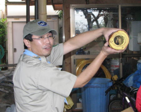 | ひがおきる あいだに ぬらした しんぶんしに あるものを?? つつんで |