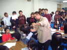中区の東別院青少年会館2Fに於いて、<2002年春期R TKクラブ開講式>を行った。始めに各科の講師の紹介があ り、金田会長の挨拶では価値観について述べられた。その後 各科に分かれ講習を行った。会場に入りきれない程の受講生 が集まり、活気ある開講式となった。 (通信 河野昌嗣) |