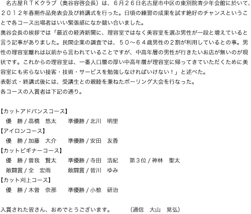 カットビギナー(基本)コース入賞者