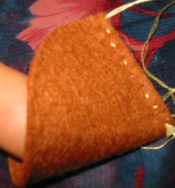 ・半分に折り、真っ直ぐな部分を細かく、ぐし縫い。