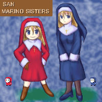 「シスター」がテーマなので シスターとシスターを掛ける 過程でマリオとサンタが混入 その結果、赤色シスター爆誕! |