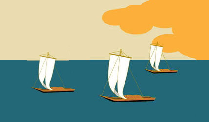 秋になると、秋まつりで人々が、よく船で、行き来をしました。おまつりは、 それは、それは、楽しいものでした。大人たちは、たくさんのご馳走をつくり、 お客さんのおいでを待ち、子どもたちは、きれいな着物をきせてもらって、 お友だちと、誘い合わせて、氏神様にでかけたものでした。 参道には、金魚すくい、綿菓子、お面や、たい焼き ヨーヨー屋さんが並び、とても賑やかでした。 神社では、神様に奉納される「かけ馬」行事や、「射放弓」が行われます。 射放弓は、日の出と、日の入りの方向に、白羽の矢を放つ神事です。 ともに伝統芸能ですが、「射放弓」は、昭和五十年、 第一号の高浜市「市指定無形文化財」となりました。 こうして、さまざまの人びとの足となって活躍していた渡船の船頭さん、 船にのり遅れた人が、岸から「お~~い」と呼べば、引き返して 船に乗せてくれた、人情ぶかい人たちでした。 |