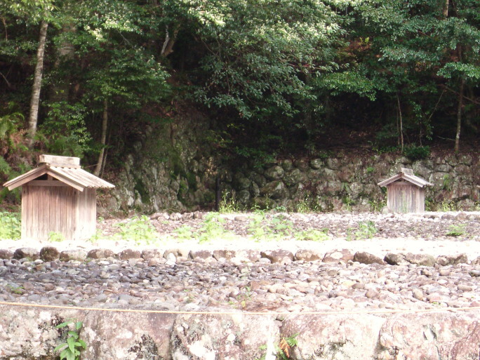 | 御神体を納める容器・「御船代(みふなしろ)」を納める御船倉(みふなぐら)が併設されているが、御船倉を持つ別宮は瀧原宮のみである。 伊勢風土記逸文には、倭姫が船で宮川を遡られたと有り、 似たような伝承として、京都の貴船神社に、 御祭神の玉依姫が黄色の船に乗って川を遡られ、その船に石を積み囲んで船形石としたとある。 |