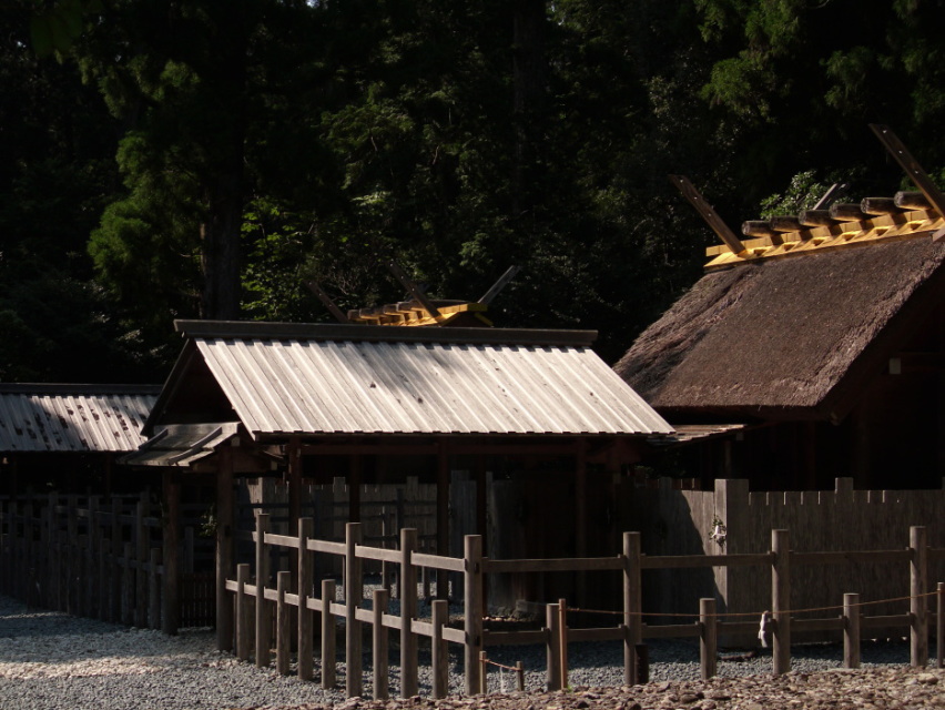 | 社殿は20年毎の式年造替により皇太神宮と同年に行われ、古殿地と呼ばれる式年遷宮の為の空き地が所管社の脇にある。 恒例・臨時の祭祀、官幣奉納の儀等すべて皇太神宮に準じて行われる。 小屋のようにしてポツンと2つ建っているのは、それぞれの別宮の心御柱(しんのみはしら)の覆屋。 次回の式年遷宮は、平成25年秋である。 |