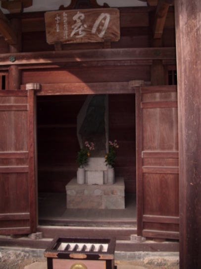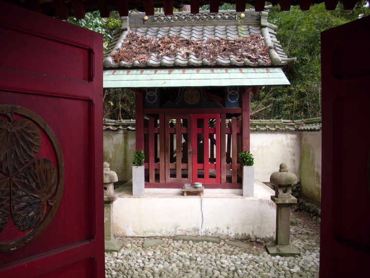 清瀧寺の後山にある松平信康廟。覆屋の中央に五輪塔が納められ、地下には遺骸が葬られている。