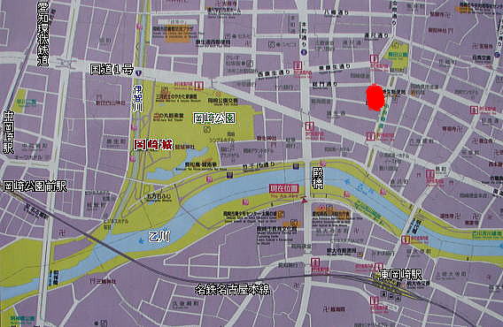 右側の赤く塗った場所が、築山という地名の場所で、左側の岡崎城主要廓から見ても、相当距離のある場所である。