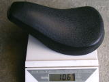 | HOME>量っちゃいました!>プラサドル  今やサドルを付ける事ができないトライアル専用車が多くなりつつある時代ですね。 そんな時代の流れに逆行するように新しいプラサドルを購入してみました。 (別の物を注文したついでに…) ちょっと前までは軽量化の定番だったこのパーツ。 削るとどのくらい軽くなるのでしょう?   < アクティブ製 プラサドル 購入時 106g  |