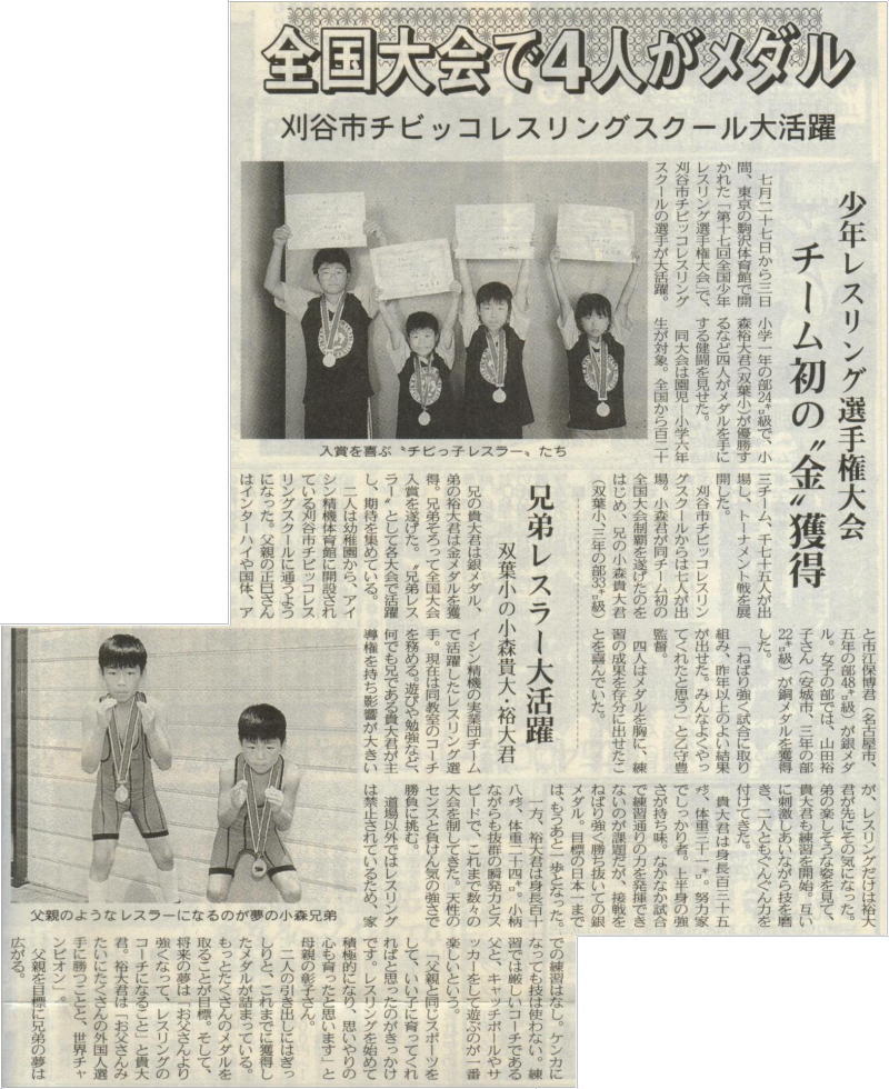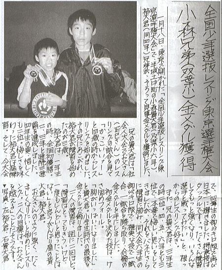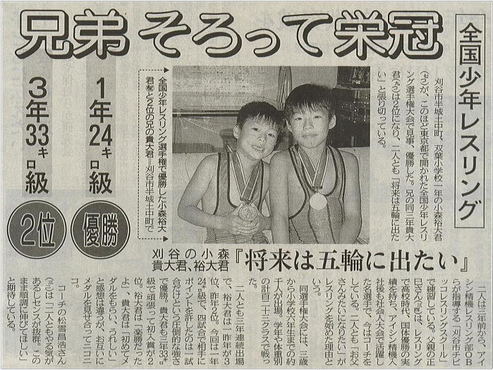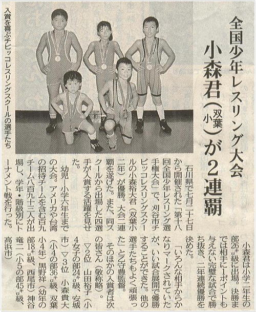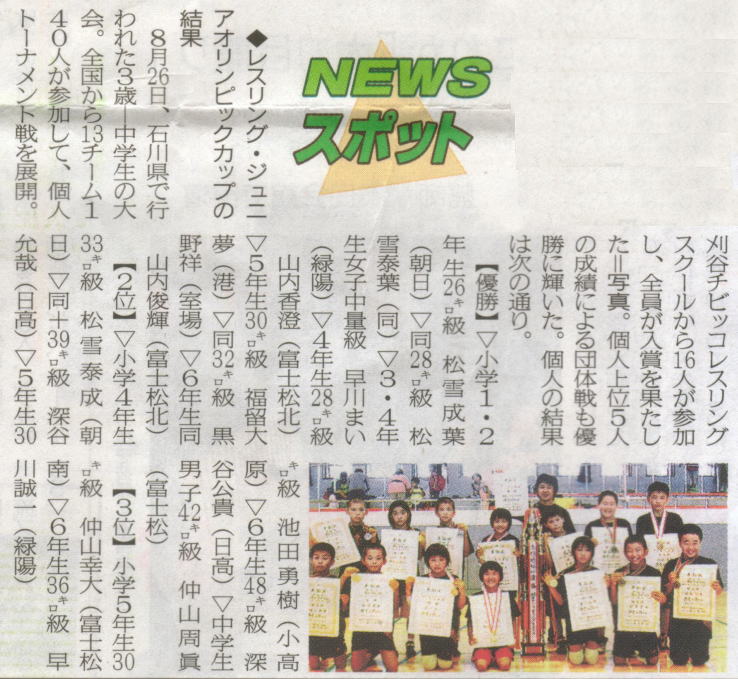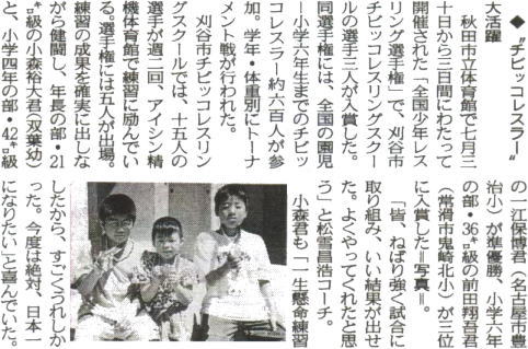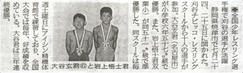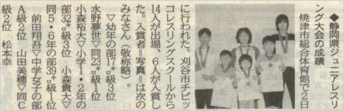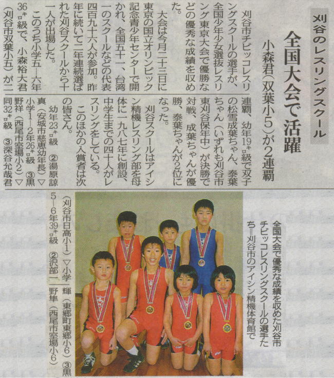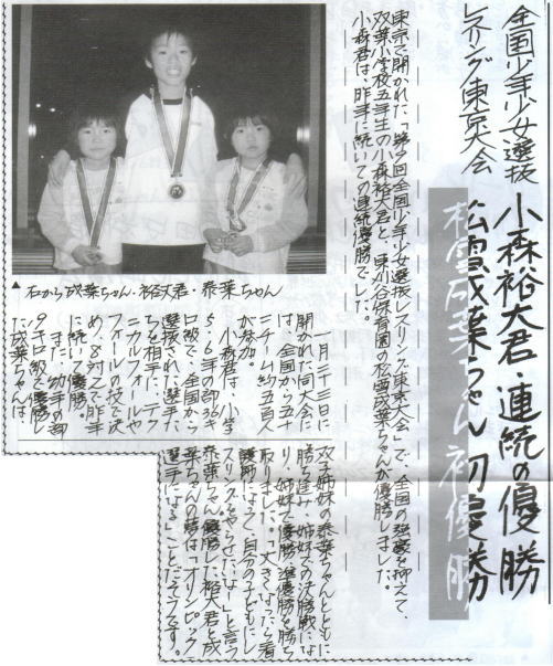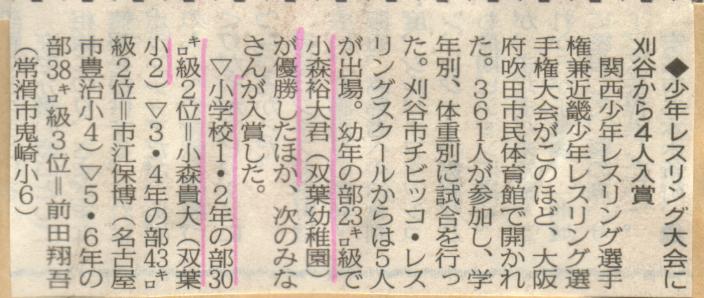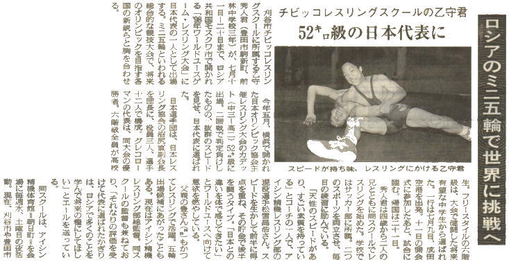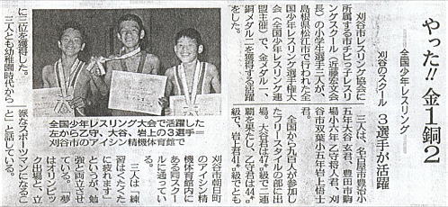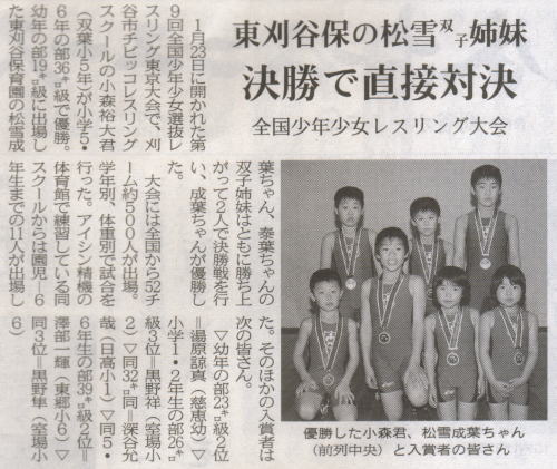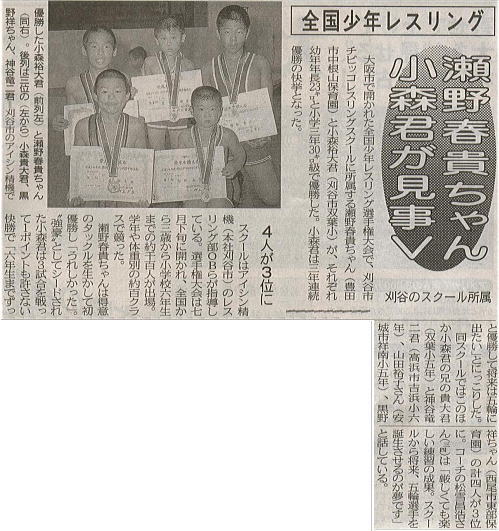 2000年1月12日:刈谷ホームニュース 記事にて 『関西レスリング大会』 |