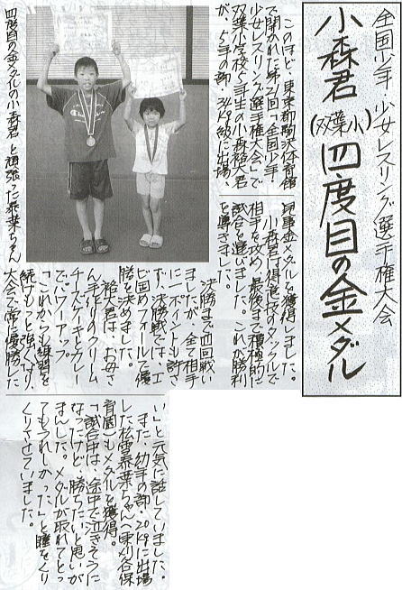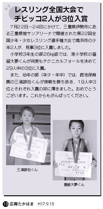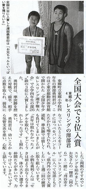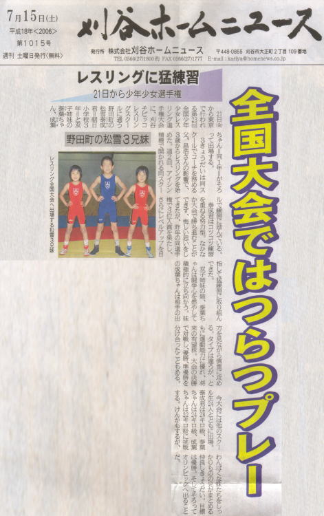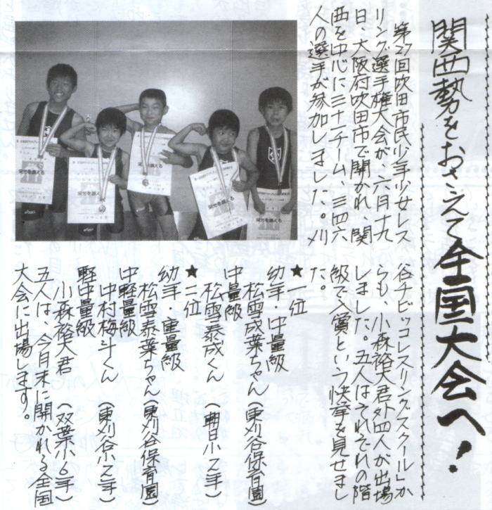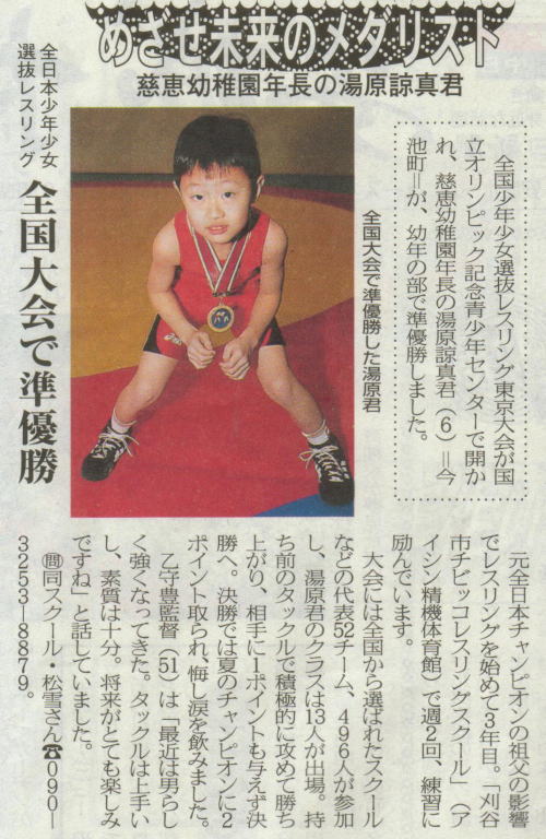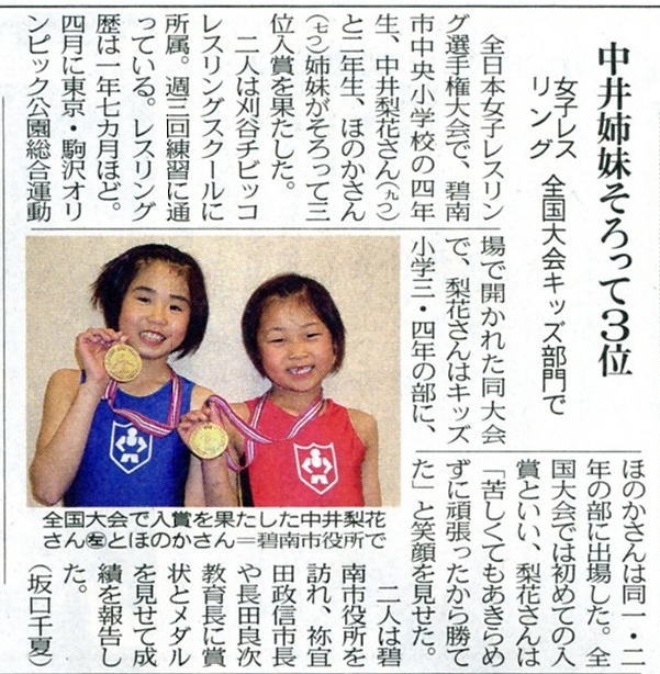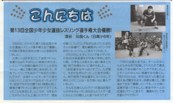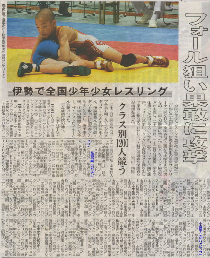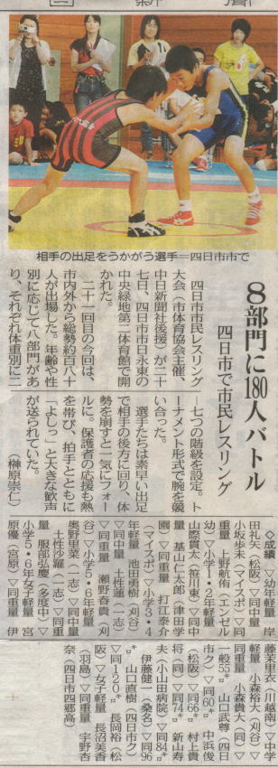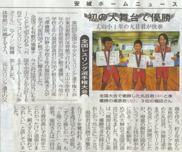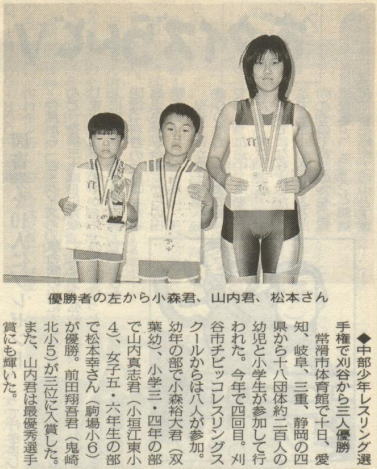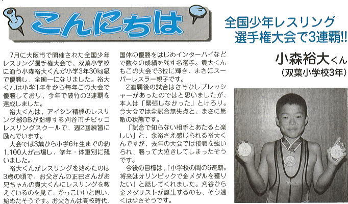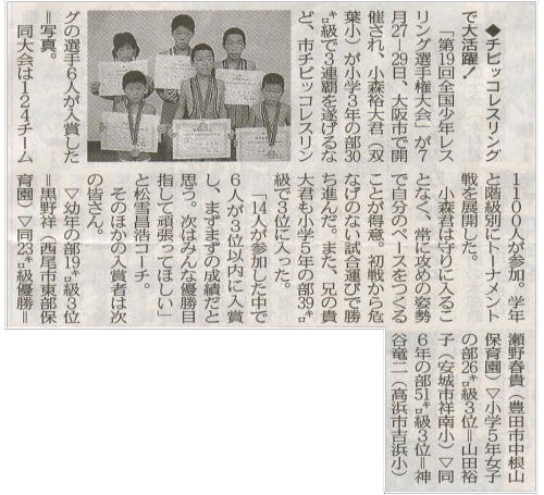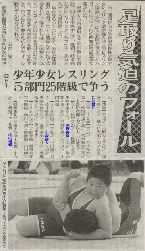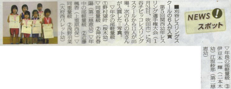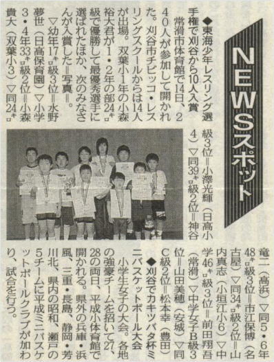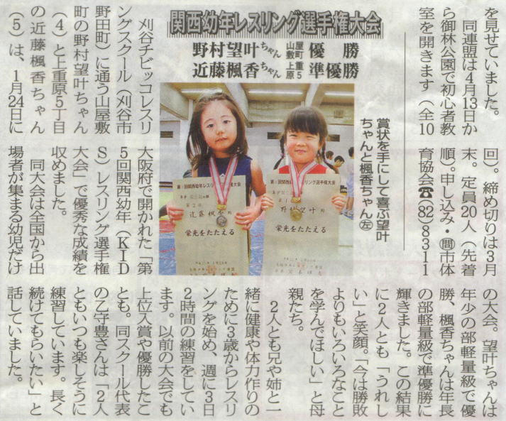 2010年3月6日:知立くらしニュース記事にて『2009年度 第5回関西幼年レスリング選手権大会 大阪』 |