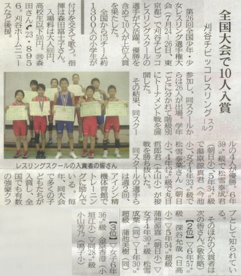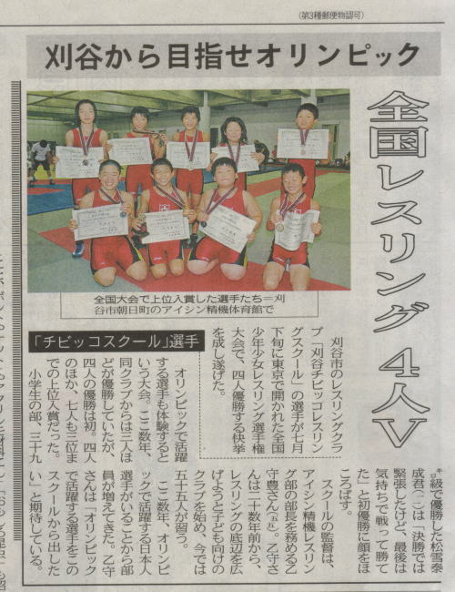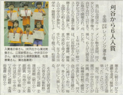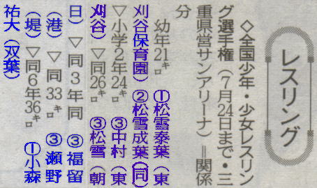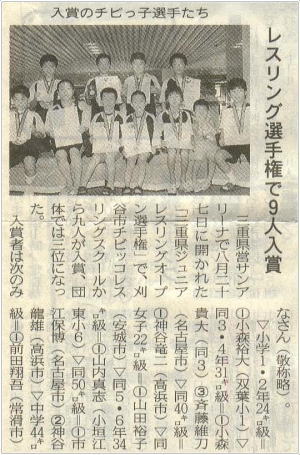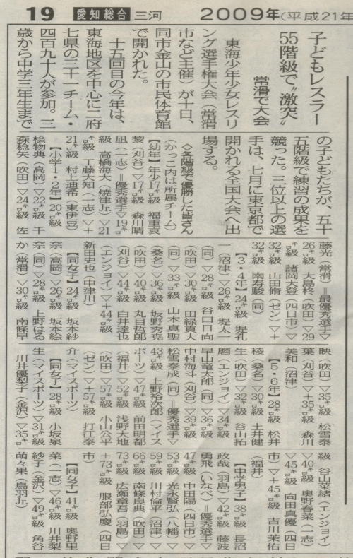 2009年8月12日:中日新聞西三河版記事にて『2009年度 全国少年少女レスリング大会』 |