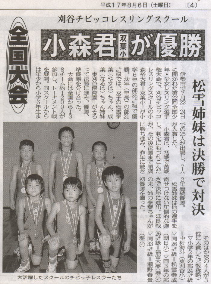 2005年8月7日:中日新聞 みんなのスポーツ記事より『2005年度 三重全国大会』 |