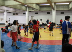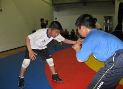 練習内容 ランニング 準備体操 マット運動 打ち込み(タックル指導) グランド練習 スパーリング その他 中学生以上については中京女子大学にて 練習をお世話になりました。 ありがとうございました。 |