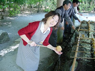 大きな宇治橋を渡った後、手水舎で手を洗う。