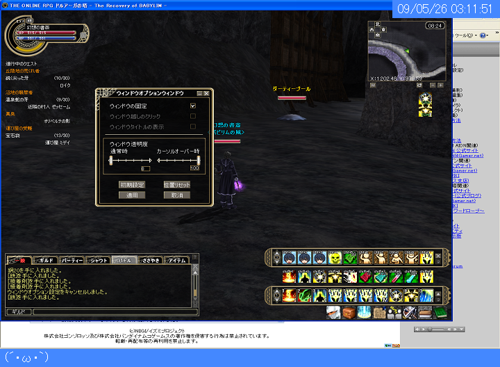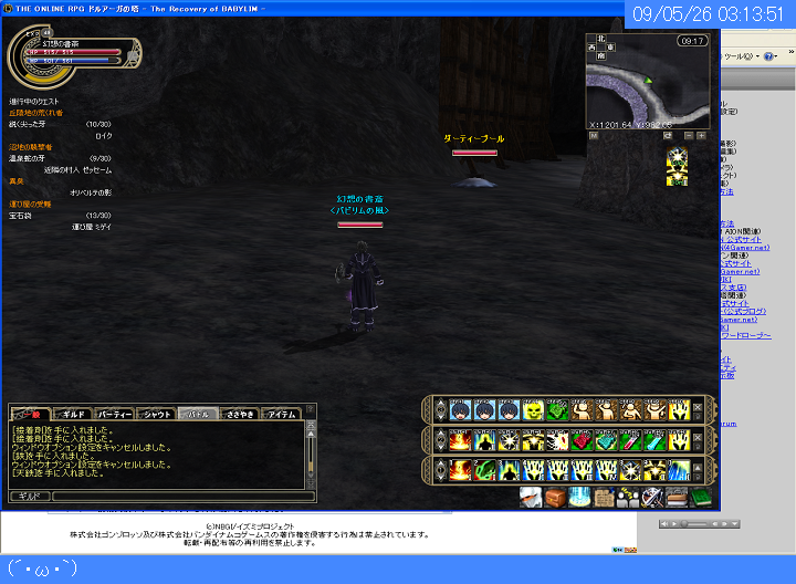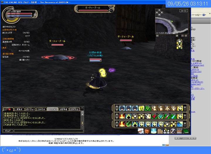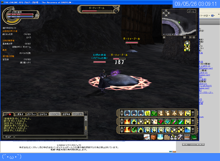 管理人がオンラインゲームをプレイしているときに40秒周期で自動更新されます。