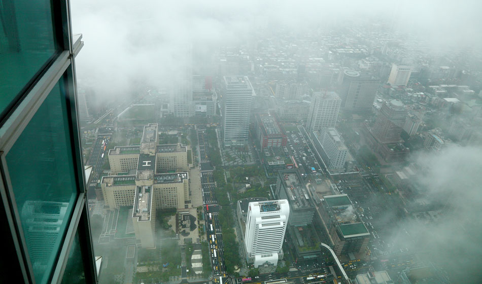 地上101階のアジア1番の高さ 上の方は雲に隠れていますネ! あれに上がります!