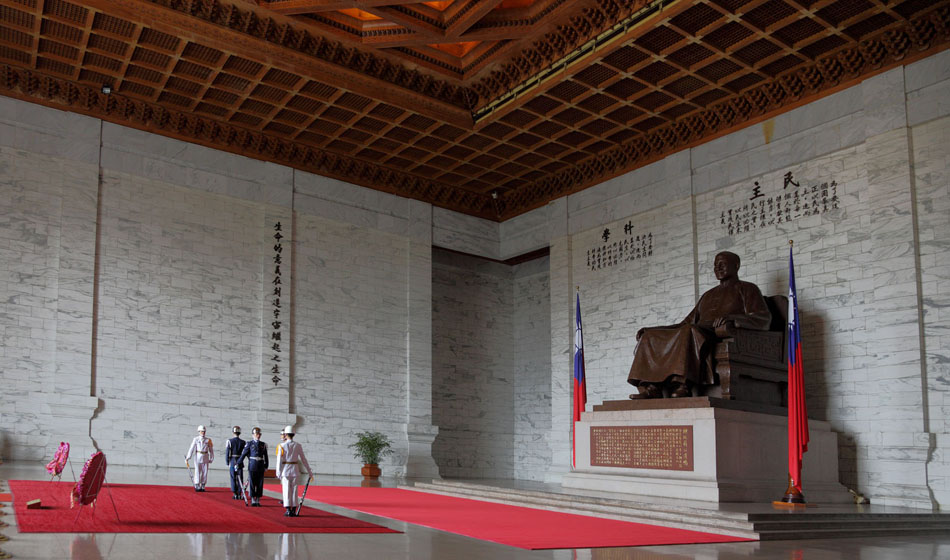 ここも衛兵の交代が見られる 大きい像は中国大陸の方を見ているそうです