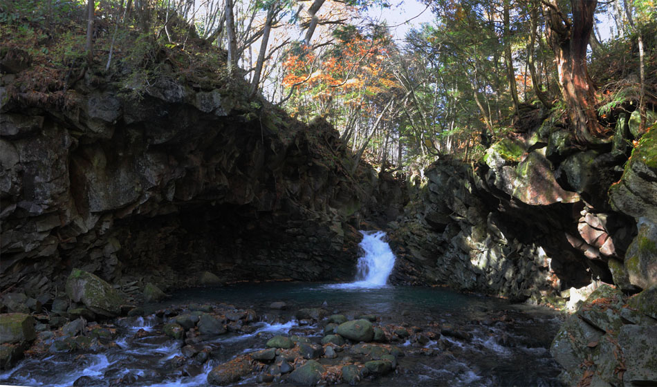 千間(せんげん)淵 岩のドームが良いですネ レンズの歪曲ではありませんヨ!