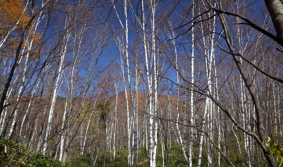 散策路の途中のシラカバ林が良い雰囲気でした