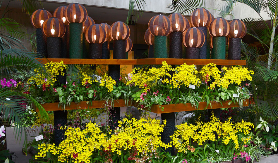 花の黄色と飾りの提灯の色の取り合わせが良いですネ